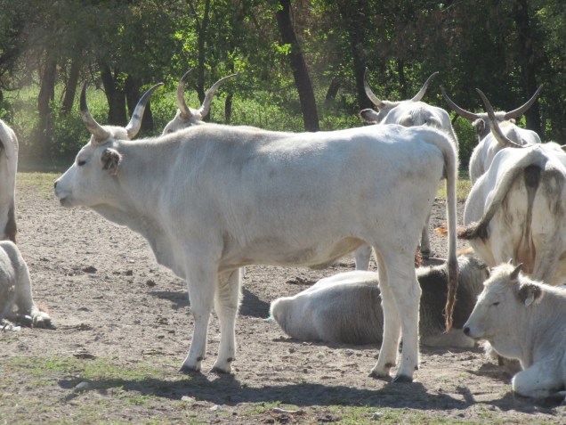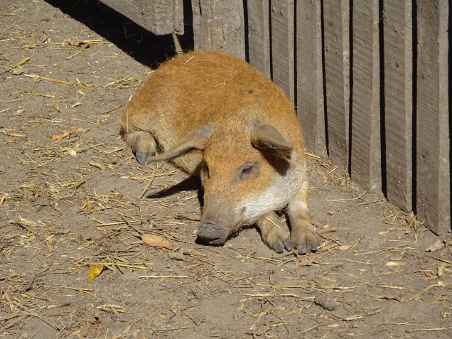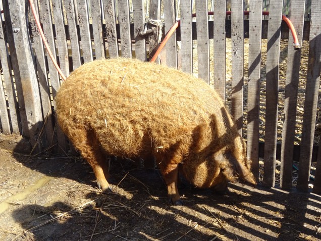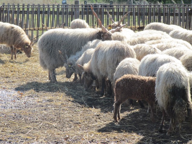Auf dem Weg zum Vorführungsplatz kamen wir an Wollschweine, Esel, Steppenrinder und Zackelschafe vorbei.