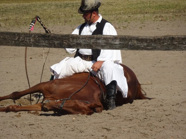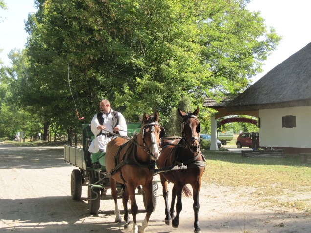 Wir fuhren mit einer Kutsche durch die Puszta zu dem Gestüt. Dort wurde eine der typischen Puszta Reiterspiele gezeigt.