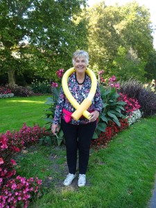 Eine Schwimmnudel in vielen Farben und jeder hatte diese am Arm. Diese Nudel um die Brust und man dümpelt im Wasser.