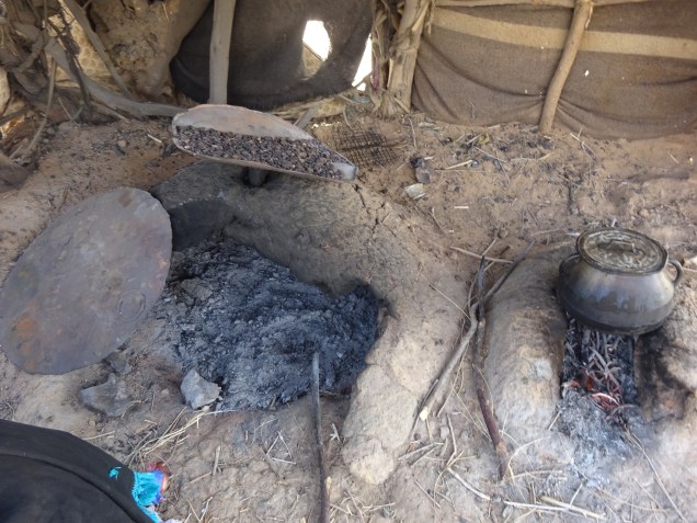 Wenn man bedenkt welches ärmliche Leben geführt wird. Wir bekamen einen Einblick wie gekocht und gebacken wird, auf offener Feuerstelle und in einem Erdloch. Gelebt wird in zwei kleinen Lehmhütten ohne Wasser und Strom. Lebensmittel und Wasser werden über weite Wege in Kanister herangeschafft. Ein Esel ist hier das Transportmittel. Ein Leben voller Entbehrungen und Arbeit.