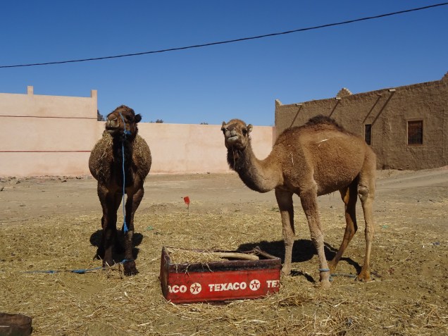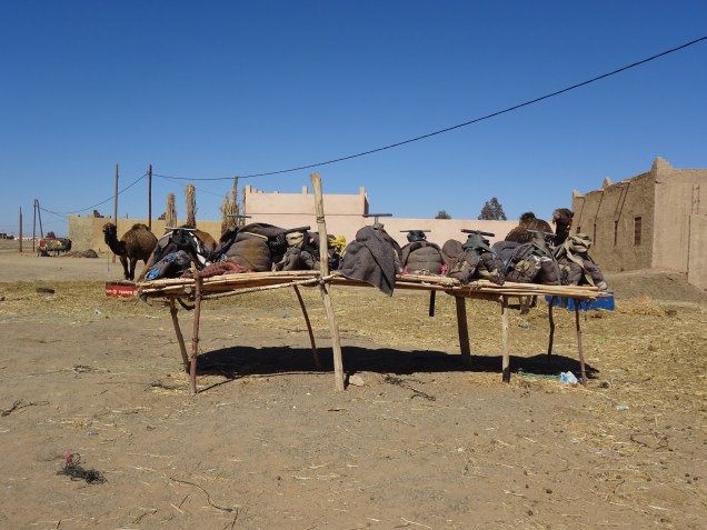 Am Dienstag erkundeten wir die nähere Umgebung. Etwas abseits vom Platz standen einige Herden Dromedare, bereit die Touristen in die Wüste zu tragen.