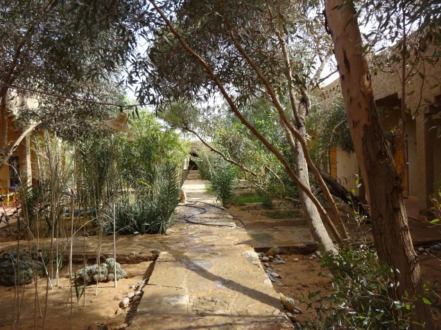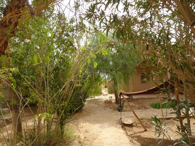 Achmed lud uns zum Mittagessen bei einem Freund ein. Ein Restaurant mit einem sehr schönen Garten, gelegen in der Wüste. Ich betone das wieder einmal, denn es führt keine Straße dahin, man muß es wissen und den Mut haben diese kaum erkennbare Piste zu fahren.