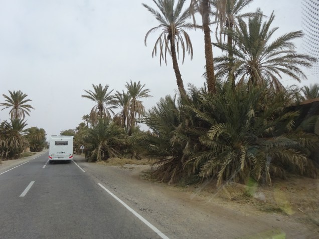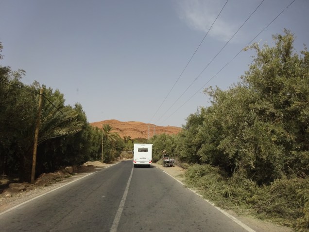 Wir fuhren oberhalb des Flusses entlang, welcher leider etwas weniger Wasser hat als sonst. Der Fluß gibt zahlreichen Palmenoasen das kostbare Nass. Die wiederum das darunter wachsende Gemüse und Obstgärten den nötigen Schatten spenden.