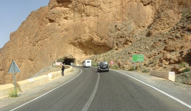 Schließlich fahren wir weiter den Pass hinauf und fuhren durch den Legionärs Tunnel. Nun das hatten wir uns etwas Spektakulärer vorgestellt. Die Tunnel wurde von den Franzosen gebaut und ist 1000 m lang und ein Durchfahrtshöhe von 3,50 m, aber man sollte mittig fahren. Auch heute noch steht ein Wachposten vor seinem Häuschen.