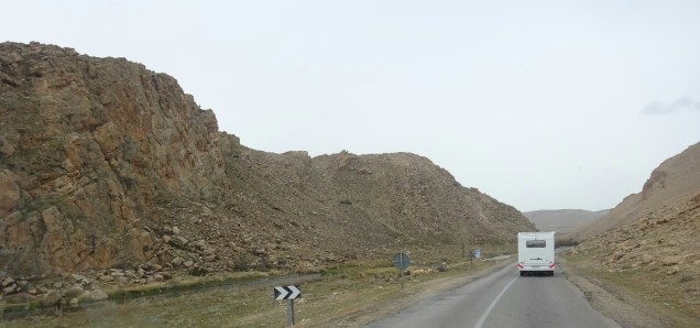 Wir wussten dass auf dieser Strecke viele Baustellen sind und wir planten die Zeit ein. Die zunächst noch grüne Hügellandschaft verwandelt sich mehr und mehr in eine karge ,braune Landschaft aus Bergen und Kurve für Kurve kommt man auf die Passhöhe. Später wechselte das dunkle Braun in anderen Farben.