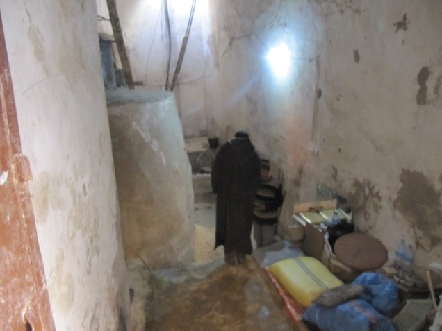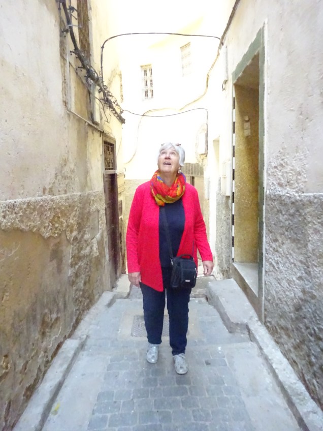 Er führte uns  durch Gassen, wo gearbeitet wurde. So konnten wir einem Bäcker beim backen einer marokkanischen Pizza zusehen, aber essen wollten wir keine. Wir gingen noch in einigen Hinterhof Läden, dort fand man wirkliche marokkanische alte Sachen.Hannelore hat einen sehr schönen Dolch erstanden, handeln ist immer Pflicht.