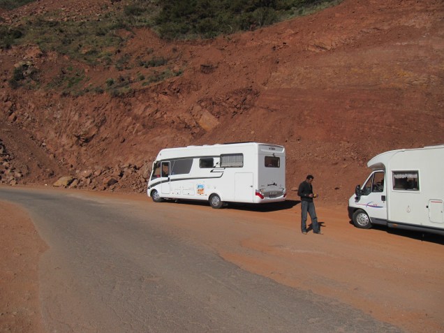 Es war eine schöne Fahrt, denn wir konnten nicht schnell fahren und hatten Zeit unsere Blicke schweifen zu lassen. Wir fuhren durch die abwechslungsreiche Landschaft des hohen Atlas. Wie schon von unseren vorherigen Ausflügen im Atlas hatten wir auch hier die Felsformationen in bizarren Formen und wechselnden Farben von rot zu dunkel Terracotta Ton bis fast gelb – dem hellen Terrakotta Ton.