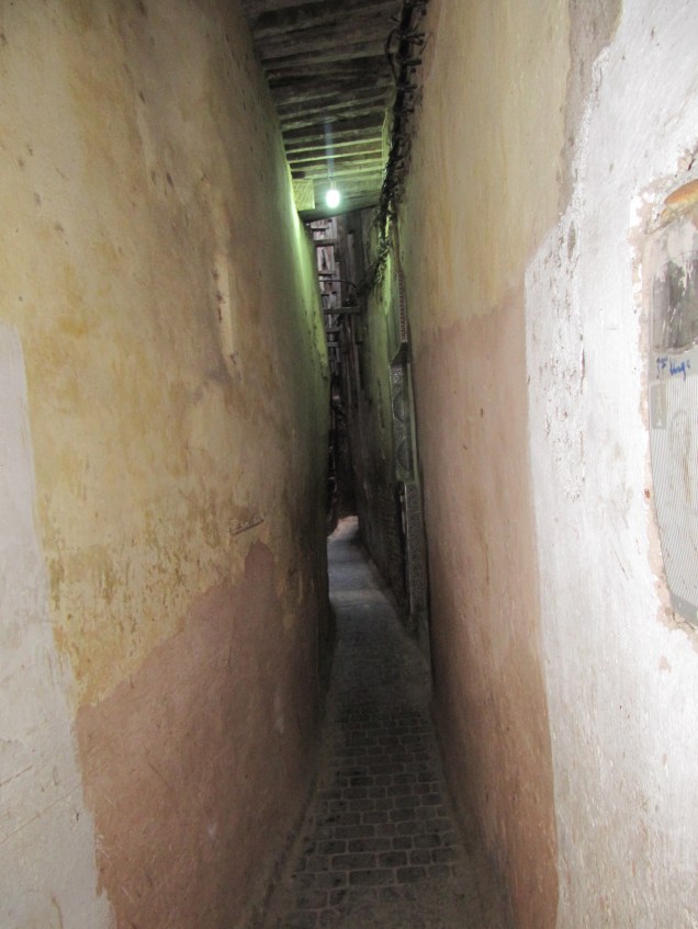 Wegen der extremen Enge gibt es keine Autos oder Mopeds in dieser Altstadt. Manche Gassen sind gerade mal 50 cm breit und häufig gibt es auch Treppen dort.